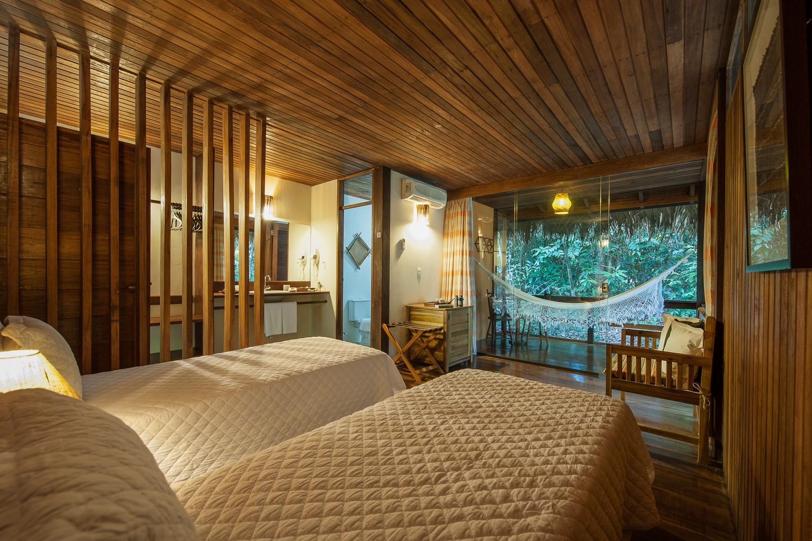 Es gibt 16 Cottages Standard, die für 1 – 3 Personen ausgerichtet sind und einen wunderschönen Blick in den Amazonas-Regenwald bieten. Die 4 Bungalows Superior sind etwas größer und romantisch eingerichtet, was sie ideal für Hochzeitsreisende macht. Ein besonderes Highlight sind die 2 luxuriösen Bungalows Panorama, die dank einer 10 Meter langen Glaswand einen beeindruckenden Blick in die Natur des Regenwaldes bieten. In der Anavilhanas Jungle Lodge übernachten die Gäste inmitten des Amazonas-Regenwaldes und müssen trotzdem nicht auf Komfort und Luxus verzichten.